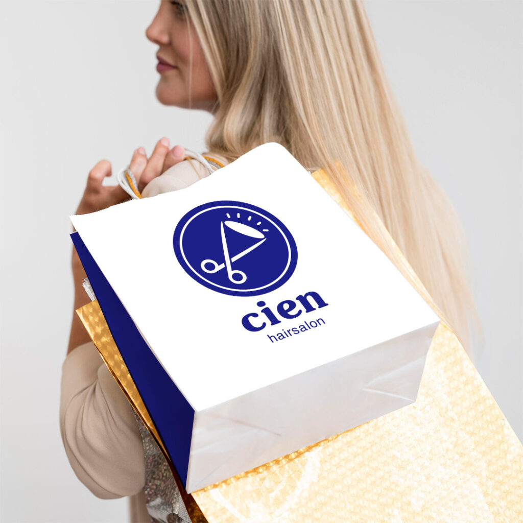 サロンに来てくださったお客様が商品を購入下さった場合等に使用する紙袋のデザイン制作をご依頼いただきました。デザインは男性・女性ともに受けるデザインで、ネイビー、ウォームベージュ、サンド、チャコールあたりをテーマカラーに使用したいというご希望でした。