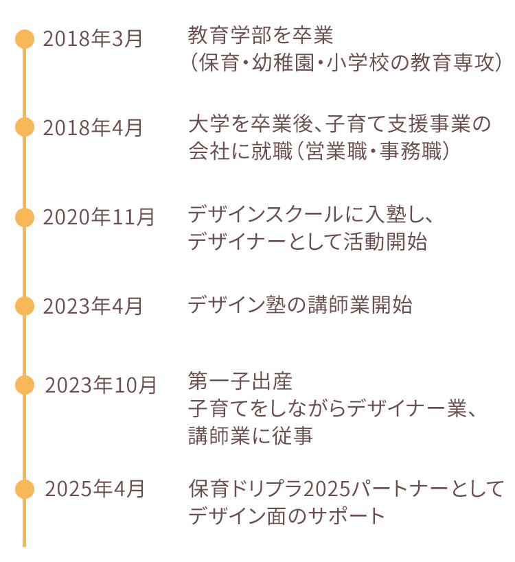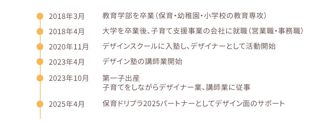 教育学部を卒業後、子どもたちの未来に関わる仕事・ボランティアに携わってきたリアルな経験を元に、主に教育・保育の分野で頑張っている方々をデザインでサポートさせていただいております。