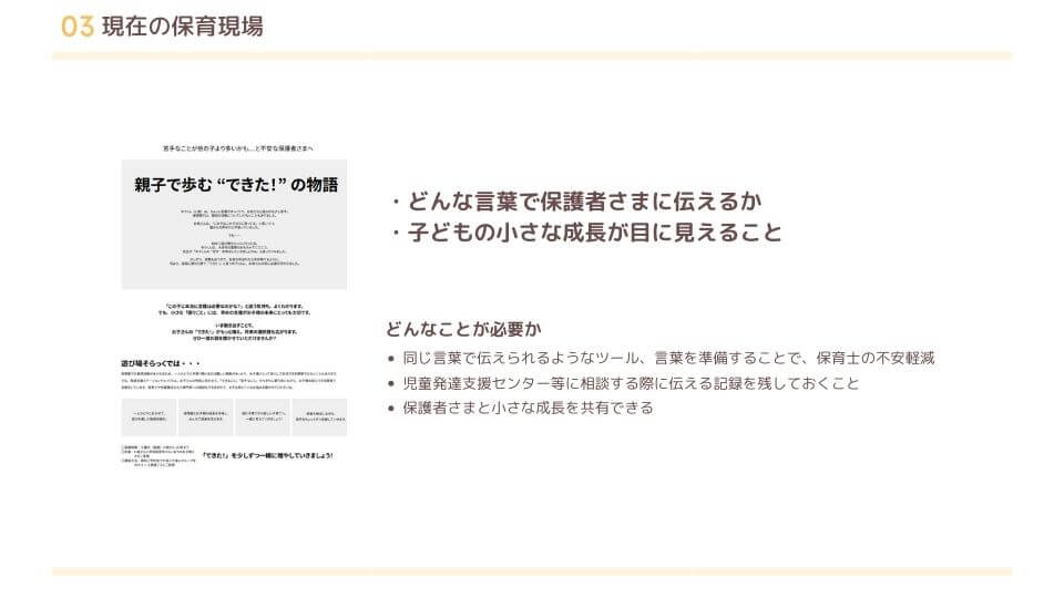 その上で、保育業界関係者として、デザイナーとしてどうしていけば良いのか、考えをお話ししました。