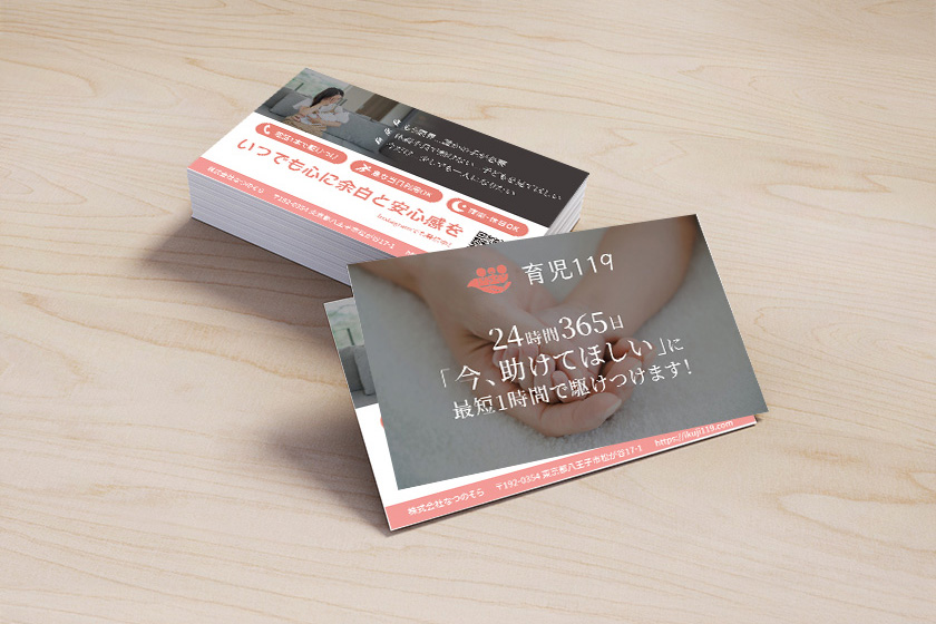 プレゼンターパートナー仲間木戸さん(ゆうちゃん)が育児119のたよってさんとして活動されていて、もっとみんなに知ってほしい!という熱い想いから、交流会で配布するカードを制作させていただきました。