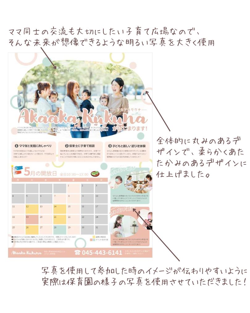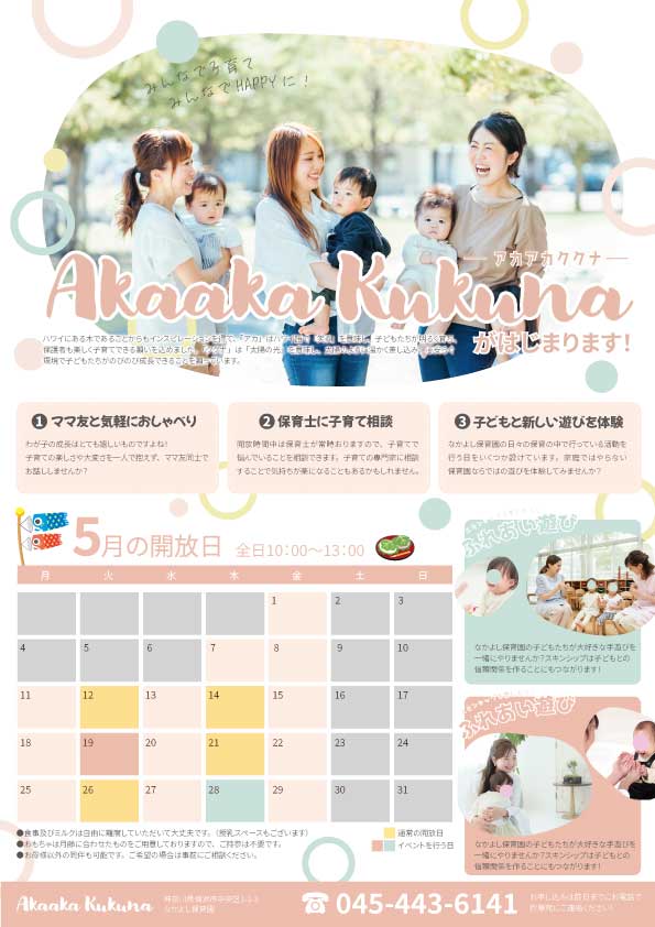 企業内保育園にて、子育て広場を開催することになり育休中の保護者様向けのチラシを制作しました。