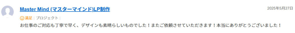 嬉しいお言葉もいただきました!ご依頼ありがとうございました!