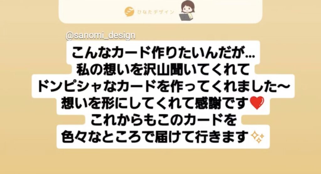 ①保育ドリプラにてプレゼンターのパートナーとして参加していた仲間の木戸さん(ゆうちゃん)。育児119という子育て中のママ・パパを助ける活動を行っている方で、たくさんの方に知ってほしい!という想いから交流会で配布するカードを制作させていただきました!