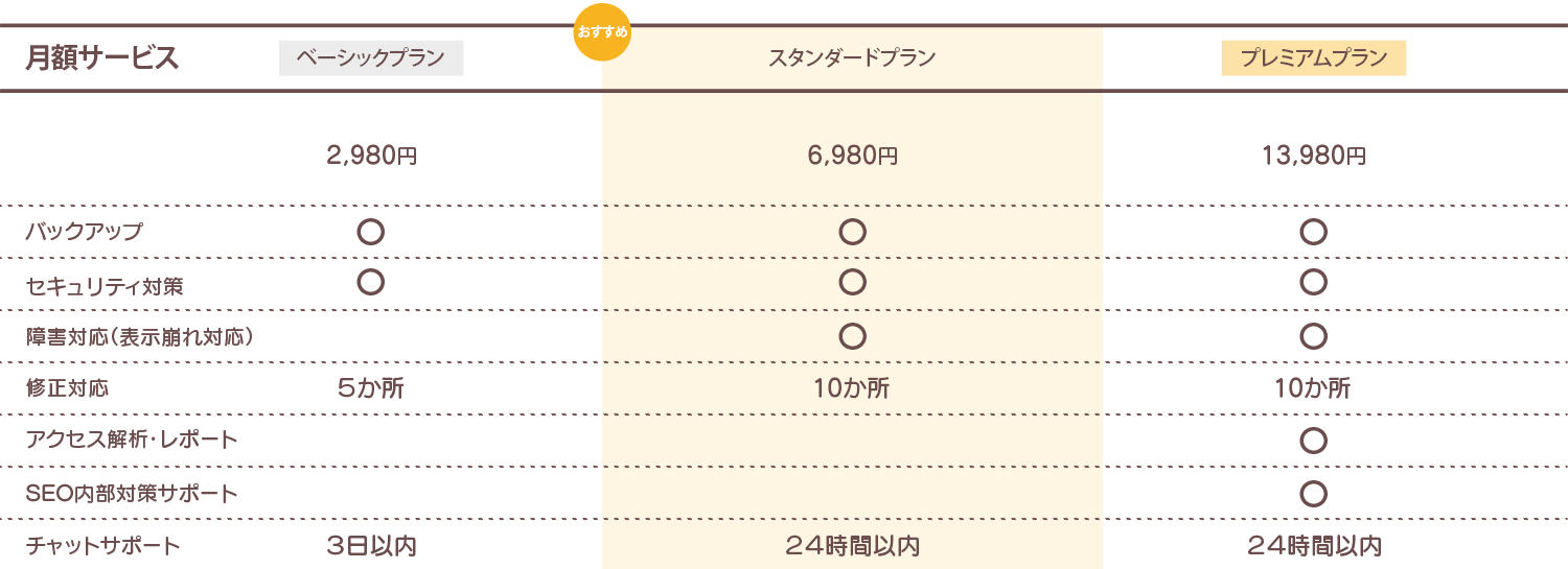 ●スタンダードプランはトップページを含む3ページ分とサイト企画を含むプランです。